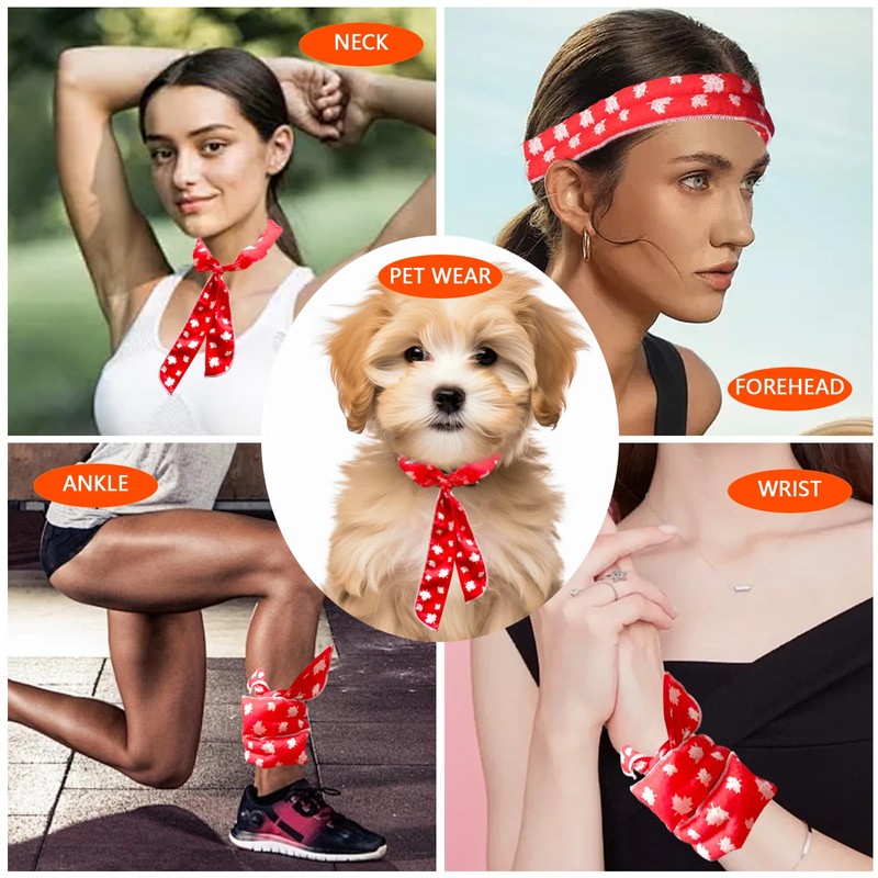 Cooling Neck Wrap – Ice Crystal Cooling Towel for Fast Cooling Relief, 5-Pack for Outdoor Activities, Camping, Running, Gym, Beach Travel (5PCS-Red-Maple-Leaf)
