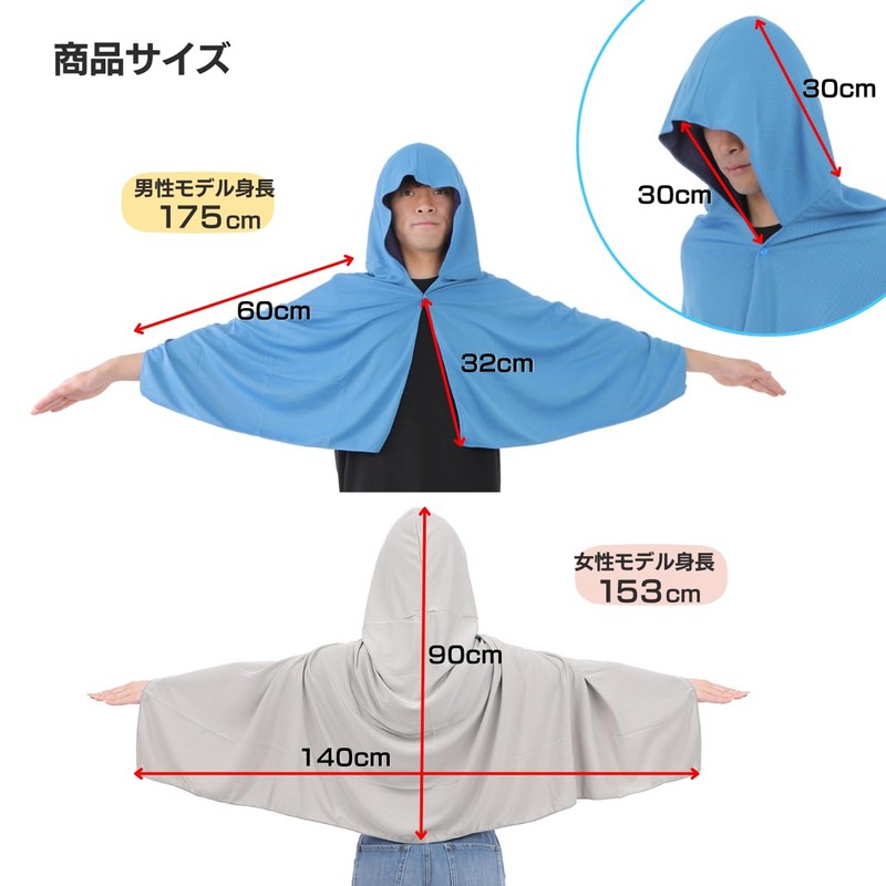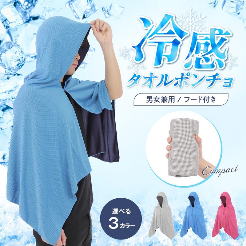 Cooling Towel, Hooded Poncho, Heat Stroke Prevention, Club Activities, Football, Perfect for Outdoor Activities, Quick Drying, UV Protection, Lightweight, Suitable for Adults and Children (Blue)