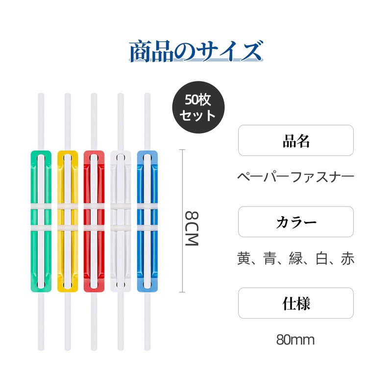 - Product Specifications: This paper fastener comes in a wide variety of colors and is convenient to use and comes in white, blue, red, green, and yellow. Size: Length: 3.5 inches (9 cm), Width: 0.5 inches (1.2 cm), Quantity: 50 sheets, suitable for 2 hole binding, easy to organize documents and documents
