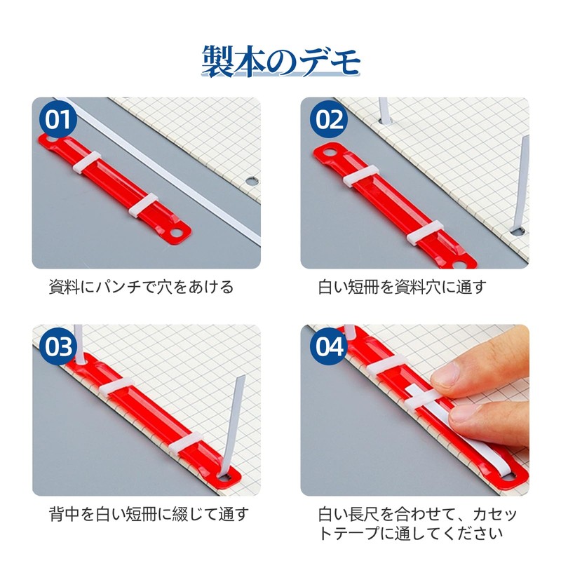 【Easy Operation】: Punch a hole in the paper, thread the white bandage through the hole, thread the staples on the back into a white belt, match the white bandage and thread the tape. The unique system makes it easy to bind notebooks, vocables, recipes, menus, and more.