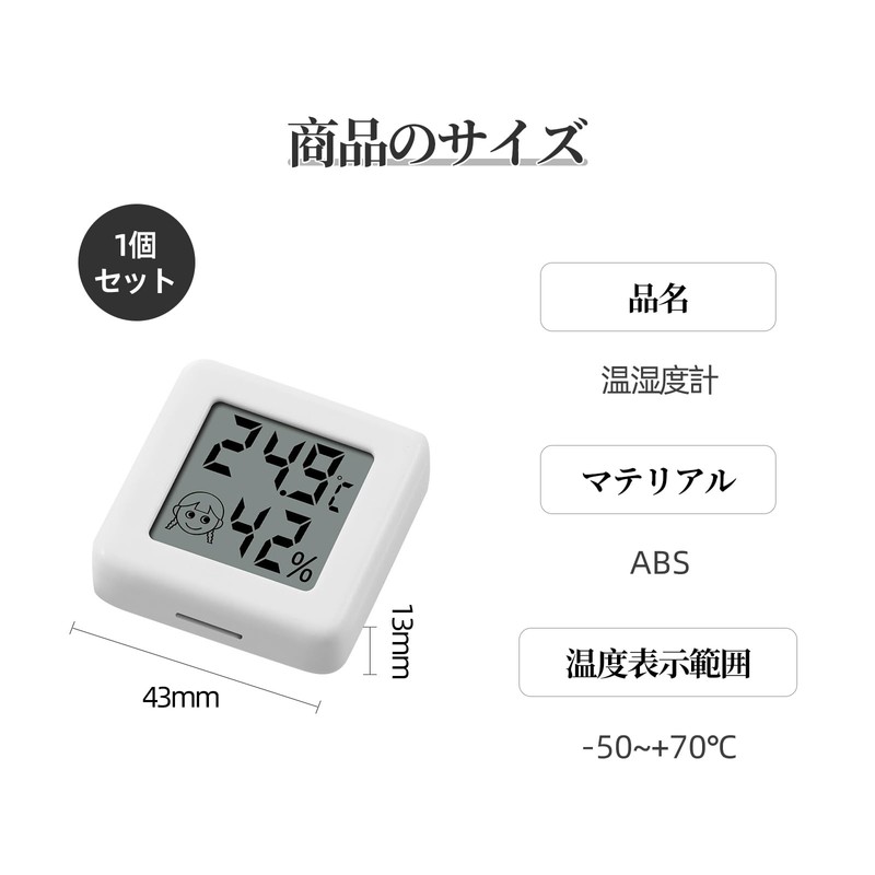 - (Easy to see your comfort level at a glance): The thermometer/hygrometer displays comfort on your face depending on the temperature and humidity. "Dry, comfortable, and uncomfortable" 3 levels of comfort are displayed in the form of face marks, making it easy to understand the temperature and humidity of your room