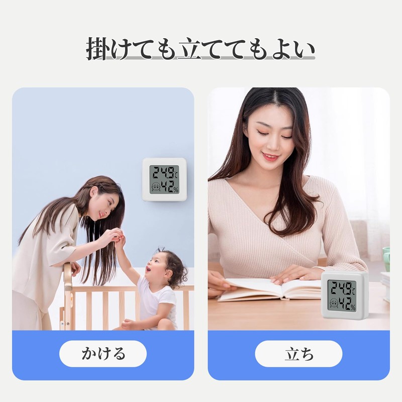 - Wide range of applications: The thermometer/hygrometer can be used with double-sided tape, so you can paste and place the room thermometer anywhere you like
