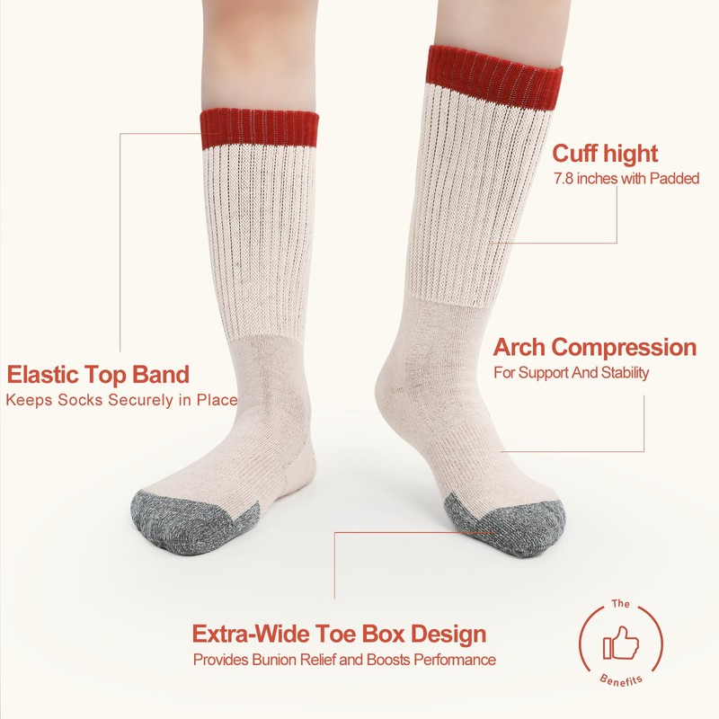 Hiking Socks, 2-Pair Compression Socks Wide Toe Box For Health Bunion Unisex, Breathable Athletic Running Sock Barefoot Sock