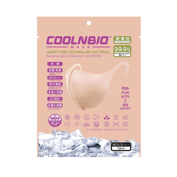 COOLNBIO MASK Cool Contact Mask, BEIGE Small Size, 1 Piece x 2 Bag Set, Summer Mask, Keeps Your Ears Hurt, Cool, Quick Drying, Antibacterial, Odor Resistant