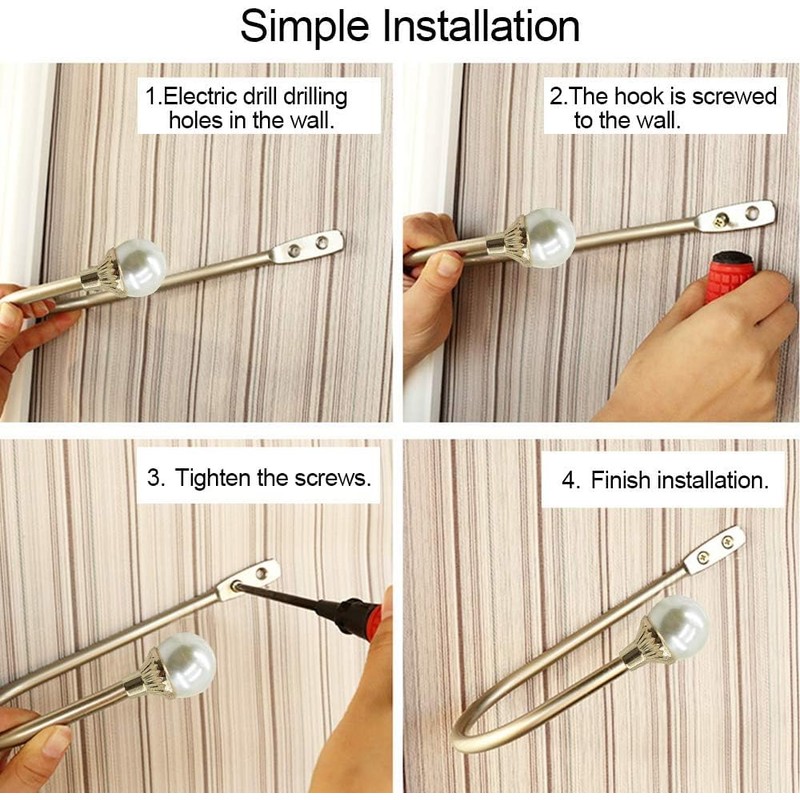 - Easy Installation: Use an electric drill to drill holes in the wall, fix the curtain hooks on the wall, put the screw and tighten it with a screwdriver.There are three angles to install the curtain holdback hooks:horizontal, vertical, or inclined angle