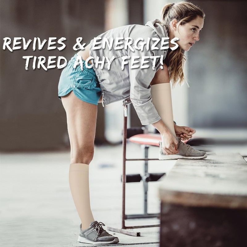 - Ture Graduated Compression-Graduated compression is the most effective form of compression, and works differently than regular compression socks. Work by creating a 'pressure gradient' which helps to push oxygen-poor blood out of the feet and legs, and back to the heart. This improves circulation, boost energy levels, and relieves symptoms such as aches and pains, throbbing, swelling, blood pooling, provides the renewable and sustained energy and allows you to heal in the legs and feet.