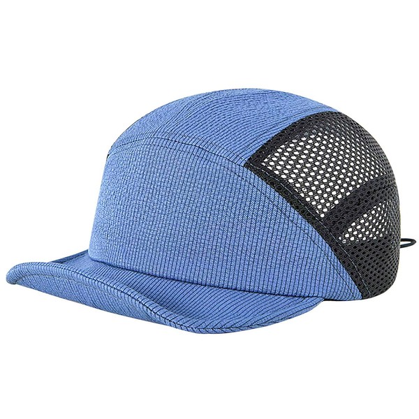 COOLSOME 5 Panels Hat Quick Dry Drawstring Airy Breathable Flat Bill Cap Curled Roll-Brim hat (US, Numeric, 7, 7 3/8, mesh Light Blue |6cm Brim)