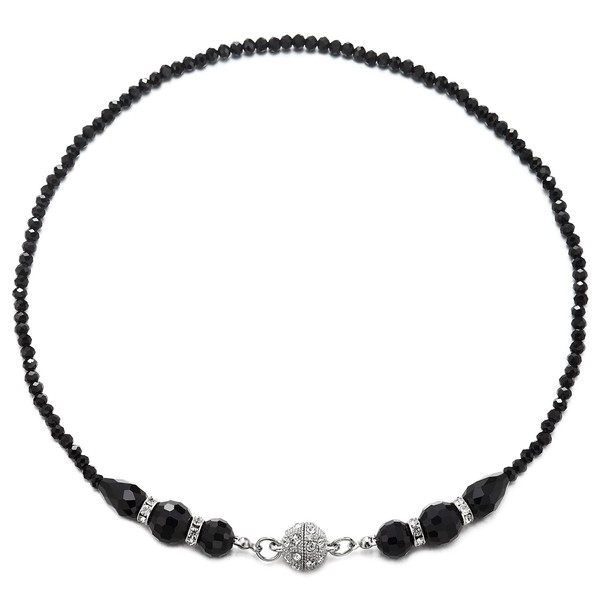 - Black Beads Statement Necklace Crystal Chain Choker Collar Clasp with Cubic Zirconia