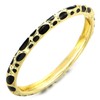 - Classic gold tone bangle bracelet, black enamel polka dots pattern, smooth hinge closure design, for women