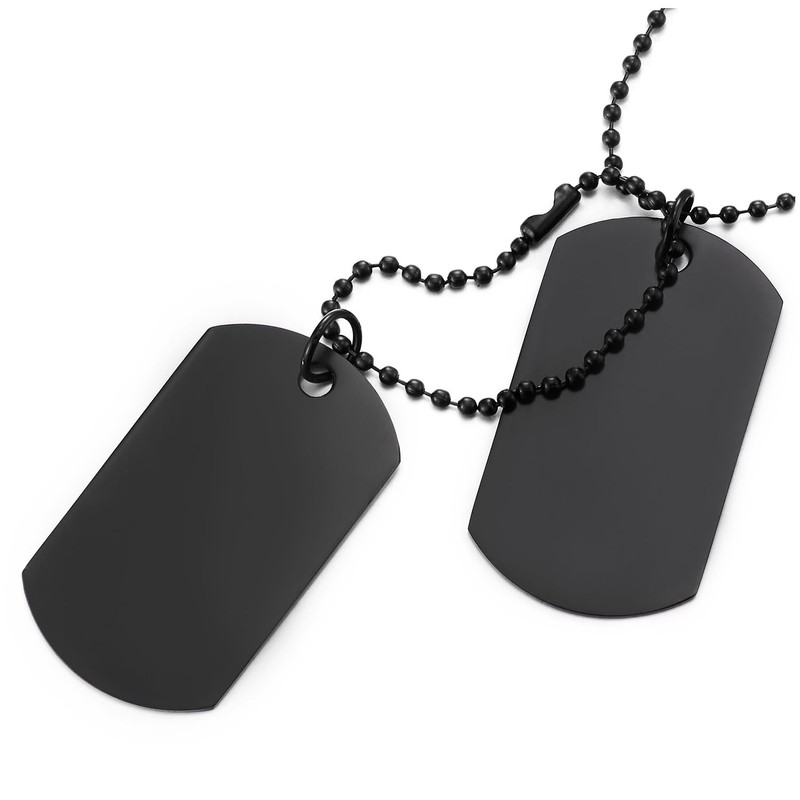 - Classic two pieces men's black dog tag pendant and 69 cm ball chain