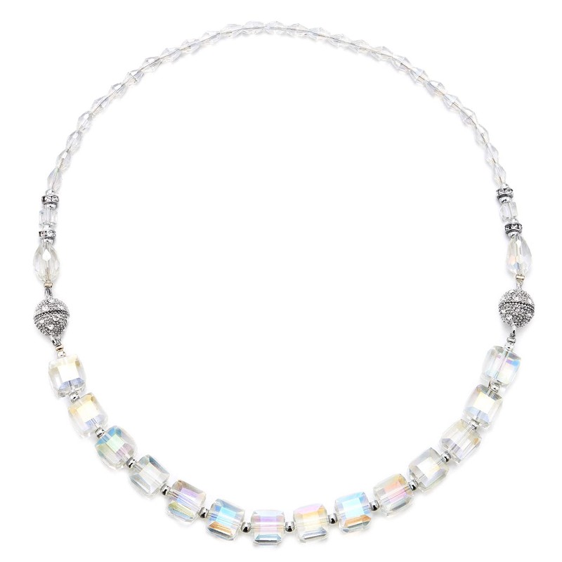 - Crystal White Rainbow Cube Navette Beads Necklace, Rhinestones Magnetic Clasp, Detachable Bracelet