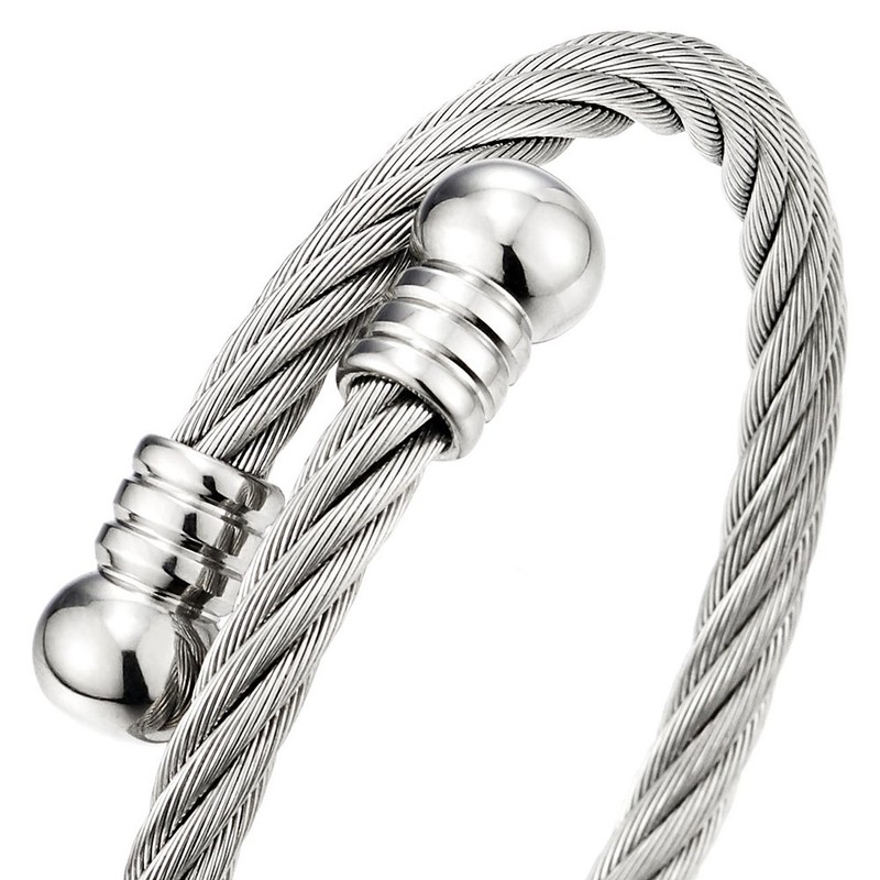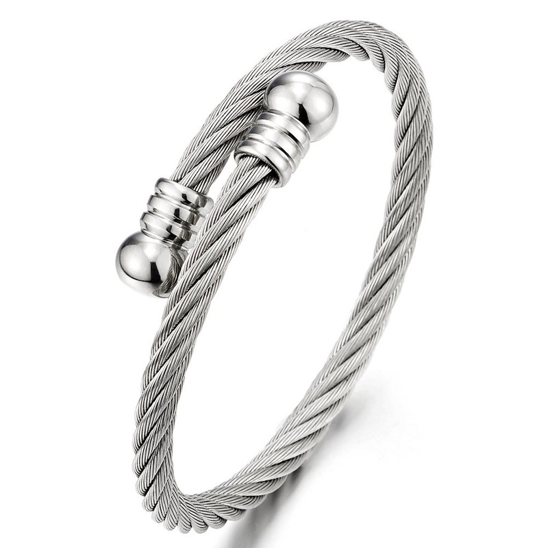 - Elastic Adjustable Mens Womens Stainless Steel Twisted Cable Cuff Bangle Bracelet Silver Color