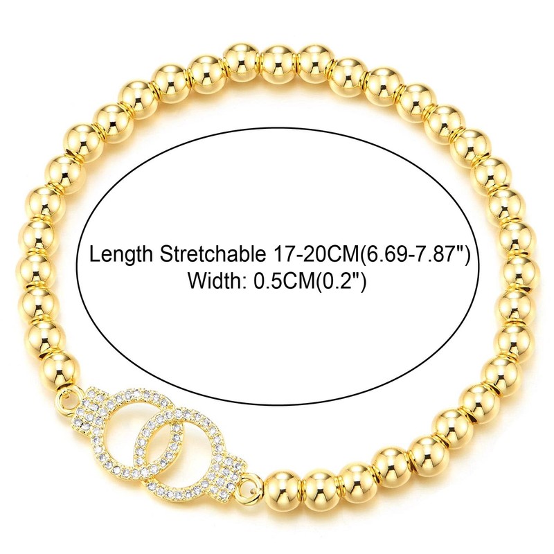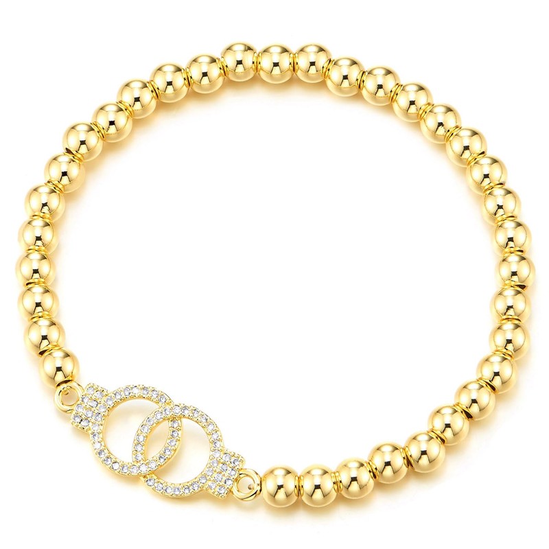 - Elegant Interlocking Cubic Zirconia Ring Charm Gold-Coloured Beads Bracelet for Women, Stretchy Elastic, Sparkling
