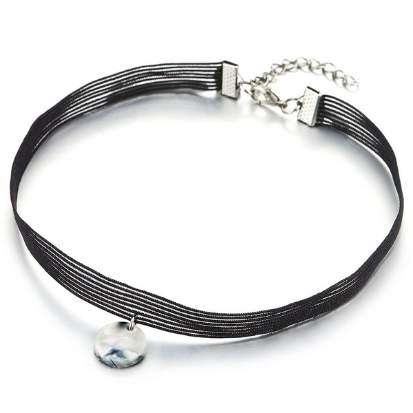 COOLSTEELANDBEYOND Gothic Victorian Black Tattoo Choker Women's Necklace with Acrylic Circle Pendant, Acrylic, No Gemstone