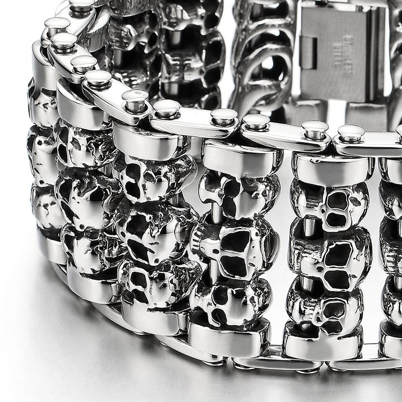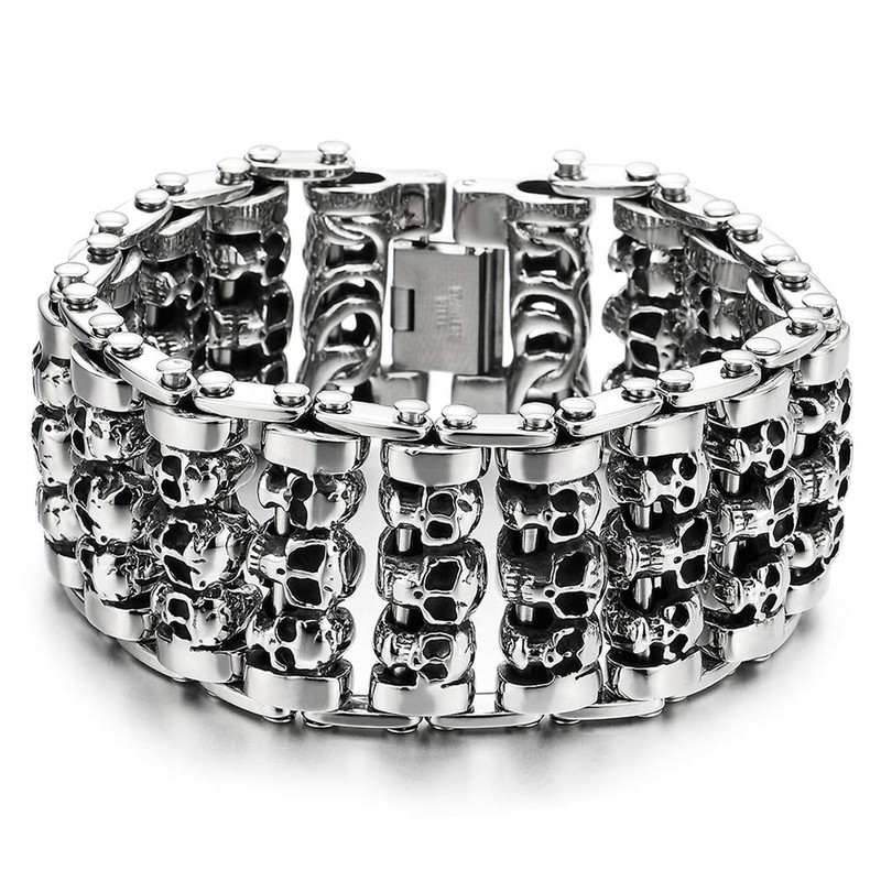 Coolsteelandbeyond Heavy Stainless Steel Large Link Chain Bicycle Chain Motorcycle Chain Bracelet with Skull for Men – Polished