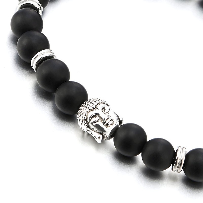 COOLSTEELANDBEYOND Matt Black Onyx Mens Boys Stretchable Bead Bracelet with Buddha Charm, Tibetan Buddhist Prayer Mala