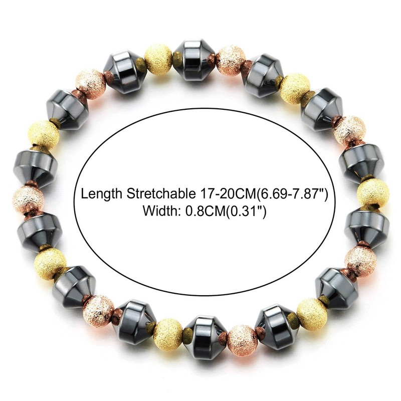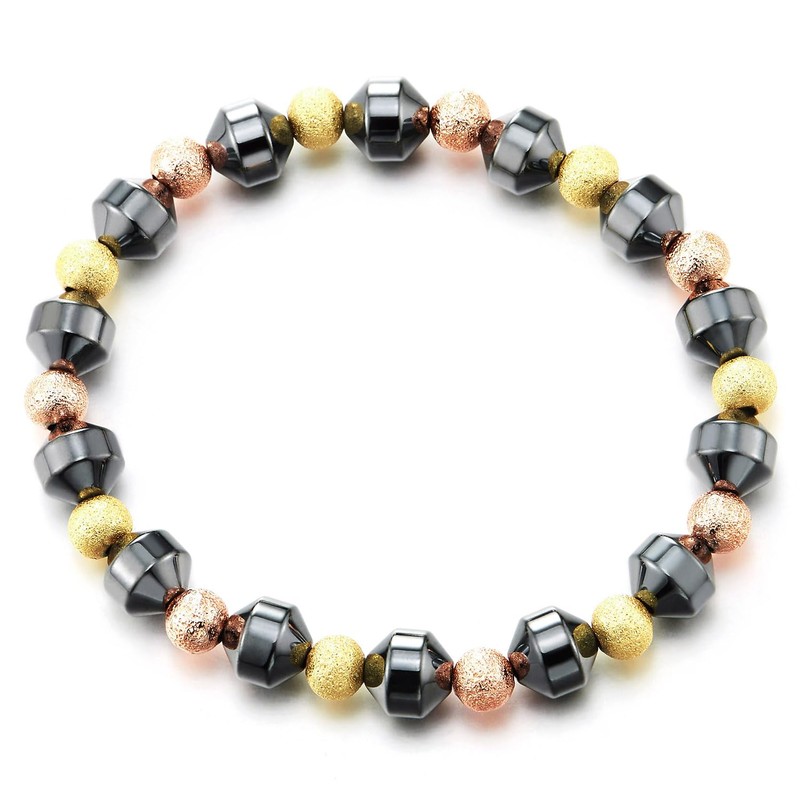 COOLSTEELANDBEYOND Men's Hematite Bead Bracelet, Three Tone Satin Metallic Beads, Stretchy, Stylish Design, Statement