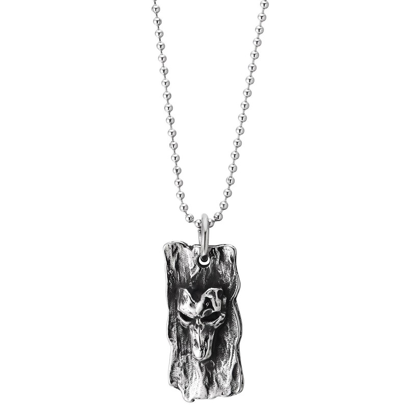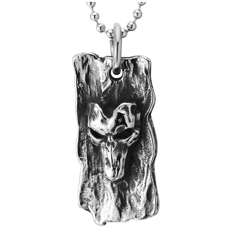 - Men's Rustic Skull Pendant Necklace, Hammered Dog Tag Style, Stainless Steel Gothic Biker Jewelry