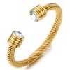 COOLSTEELANDBEYOND Men Women Gold Color Steel Twisted Cable Cuff Bangle Bracelet with Cubic Zirconia, Adjustable(CA)