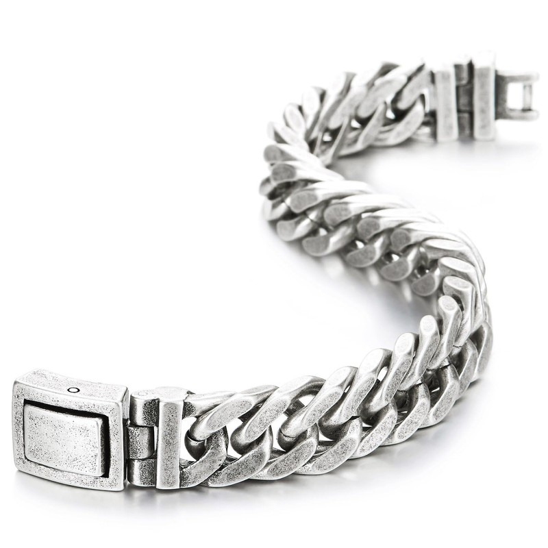 COOLSTEELANDBEYOND Mens Stainless Steel Cuban Chain Bracelet, Masculine Large Curb Chain, Aged Silver Finishing, Length 8.46", Width 0.59", Metal, no gemstone