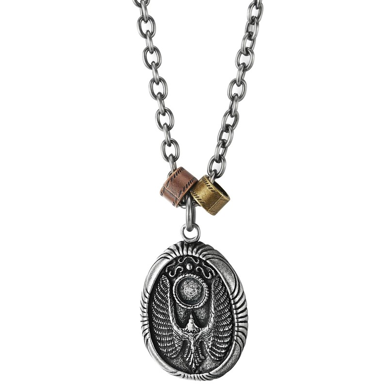 - Mens Vintage Eagle Pendant Oval Medallion, Charm Necklace with 24 in Rope Chain