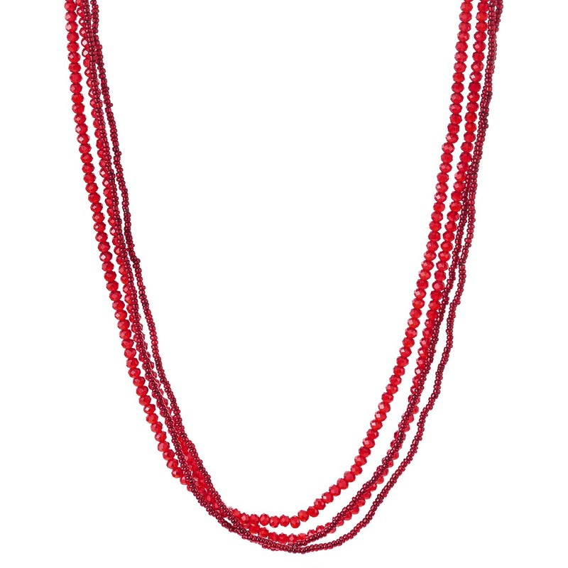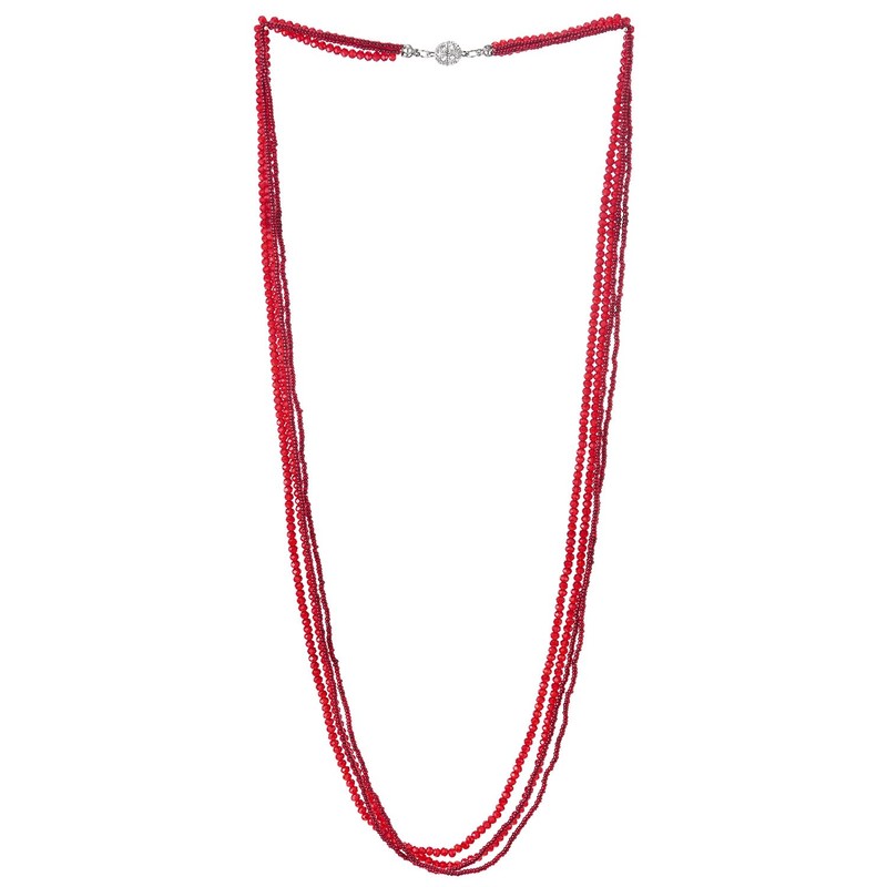 - Red Crystal Beads Long Necklace Statement, Multi-Strand For Women, Elegant Layered Waterfall Chains