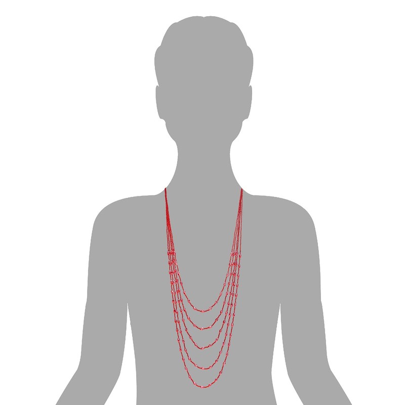 - Red Oval Beads Statement Necklace Multi-Strand Long Chains with Crystal Charms Pendant