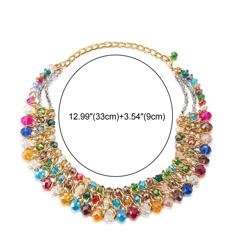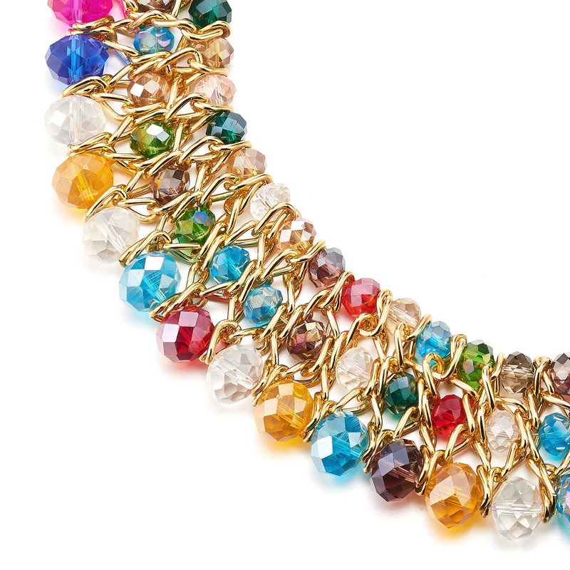 - Statement Choker Pendant Colourful Faceted Crystal Beads Bead Cord Gold Braided Chain Necklaces Three Strands
