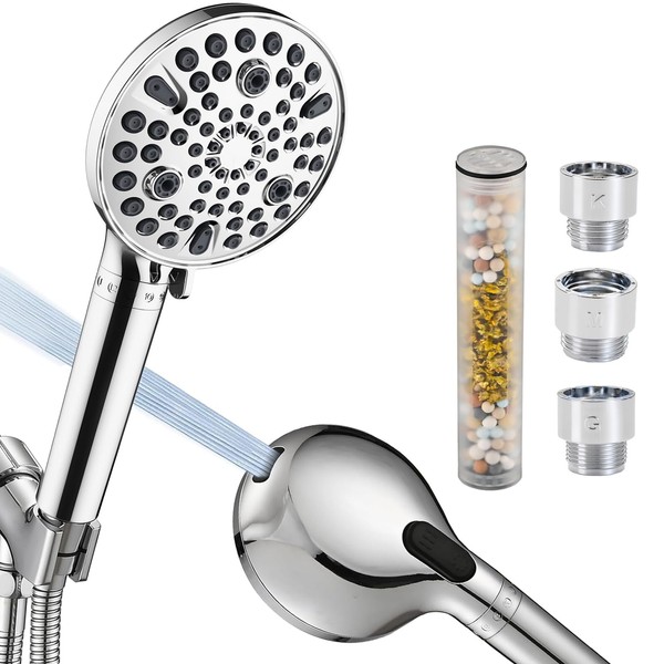 CoolWAY 高出力ハンドヘルドフィルターシャワー - 10種類のモードで塩素、重金属、不純物をろ過。肌を美しくし、髪に潤いを与える(KDFフィルター1枚付き)