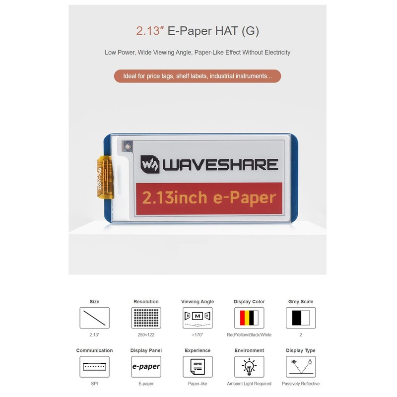 - For Raspberry Pi epaper display, no backlight, keeps displaying last content for a long time even when power down