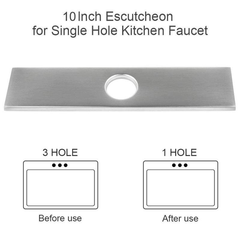 - Square Plate Cover: This plate cover length 10", width 2.24", hole diameter 1.45", compatible with most single hole sink faucet, and allows single hole faucet to be installed on 3 hole kitchen sink.