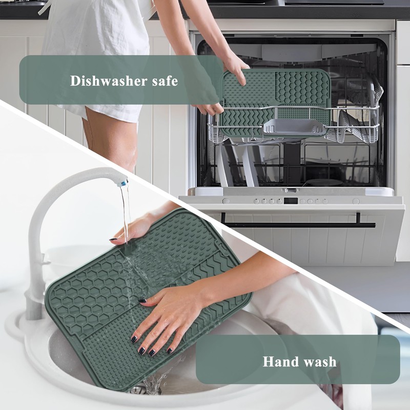 - 【Easy to Clean and High Quality Material 】---Large dog lick mat come with 1 brush for better cleaning of crevices and dead ends,can be washed directly with running water or soapy water,dishwasher safe.Lick mats are made of 100% food-grade silicone, free of BPA and phthalates, soft, durable, flexible, waterproof, foldable.