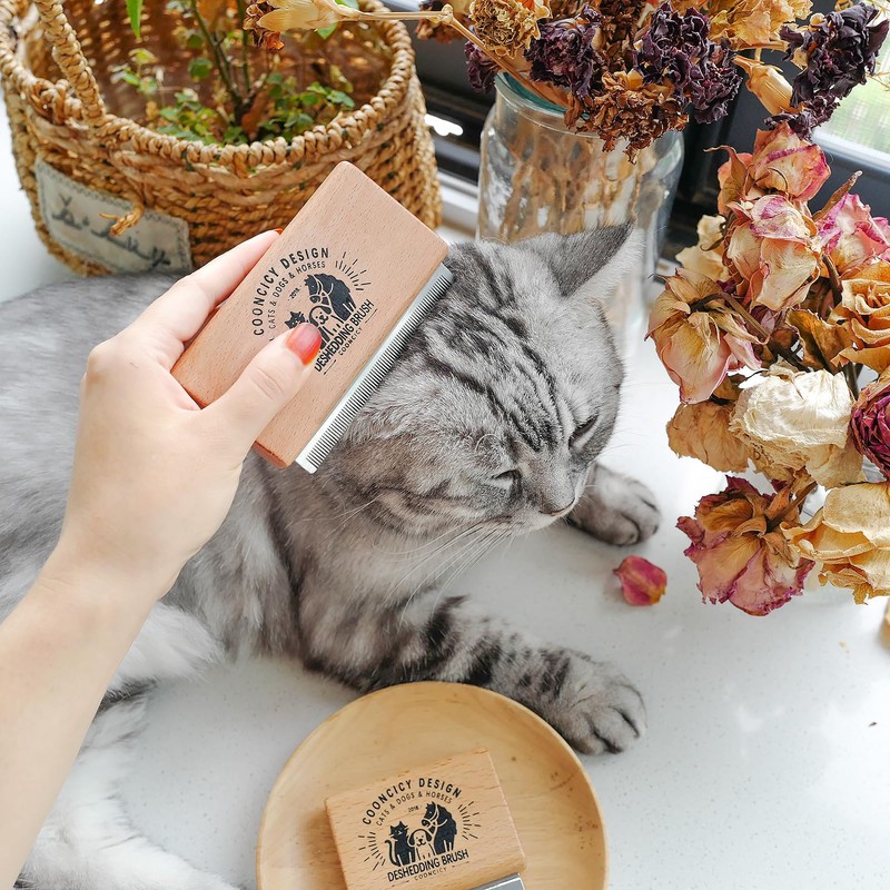 - Premium Quality Design: Crafted from 100% natural beech wood and high-grade stainless steel, this deshedding tool is durable and long-lasting. The ergonomic wood handle ensures a comfortable and firm grip for effective grooming sessions.
