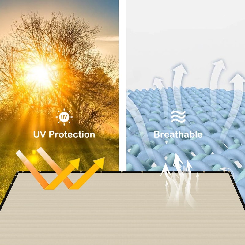 • Durable and Strong: Made of 100% new HDPE fabric, UV-resistant and not easy to fade. Double-layer edge banding reinforcement on the edge, equipped with copper grommets that are not easy to rust, enhance the tolerable tensile force, and are not easy to tear.