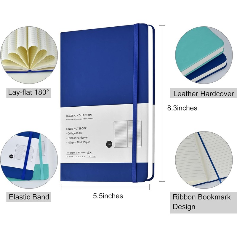 - High-Quality Paper for Smooth Writing –Each journal is filled with 160 Pages/ 80 Sheets of 100gsm thick paper, protect your eyes and provide a comfortable writing experience for journals for writing and note-taking.These bulk leather notebooks are A5 size (8.3" x 5.5") / 210 mm x 140 mm. Each sheet features 26 lines, with a line spacing of 0.27 inch / 7 mm.
