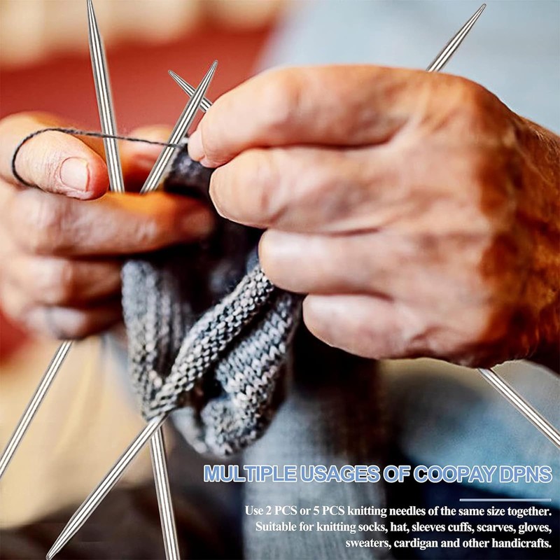 Coopay 5 Piece Needle Set 5.0 mm Knitting Needles Set, 20 cm Length Stainless Steel Knitting Needles for Socks, Scarves, Hats, Pets, Sweaters, Sock Needles 5.0 mm