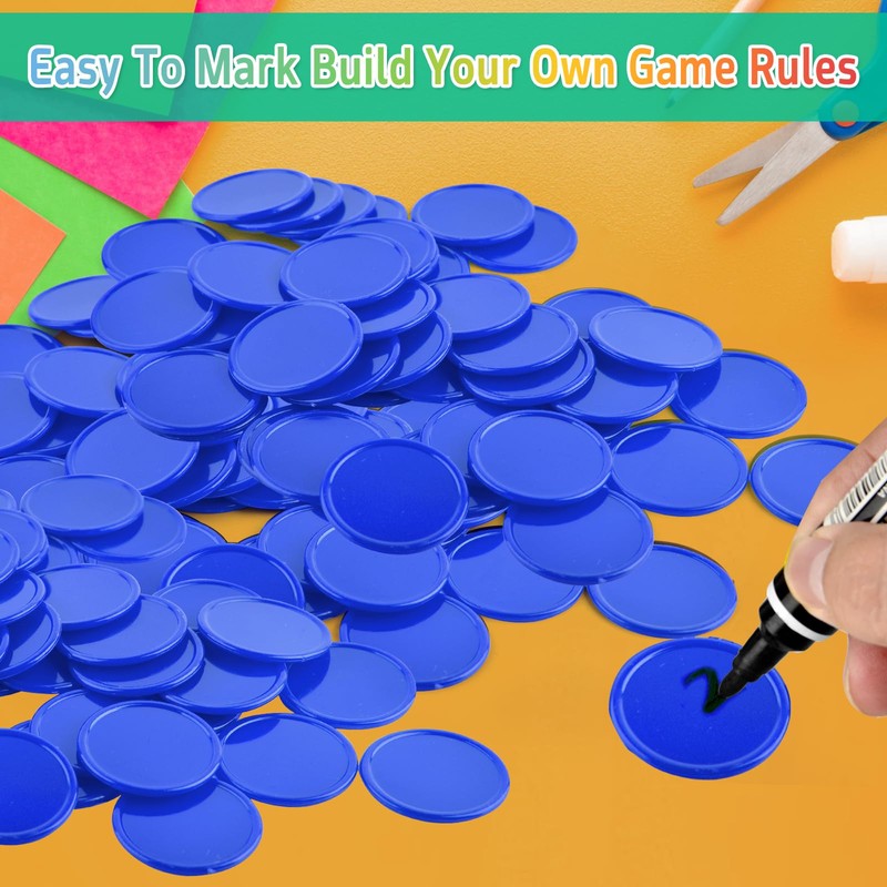 Coopay 500 Pieces Plastic Learning Counters Disks Bingo Chip Counting Discs Markers for Math Practice and Poker Chips Game Tokens Kids Reward, 1 Inch