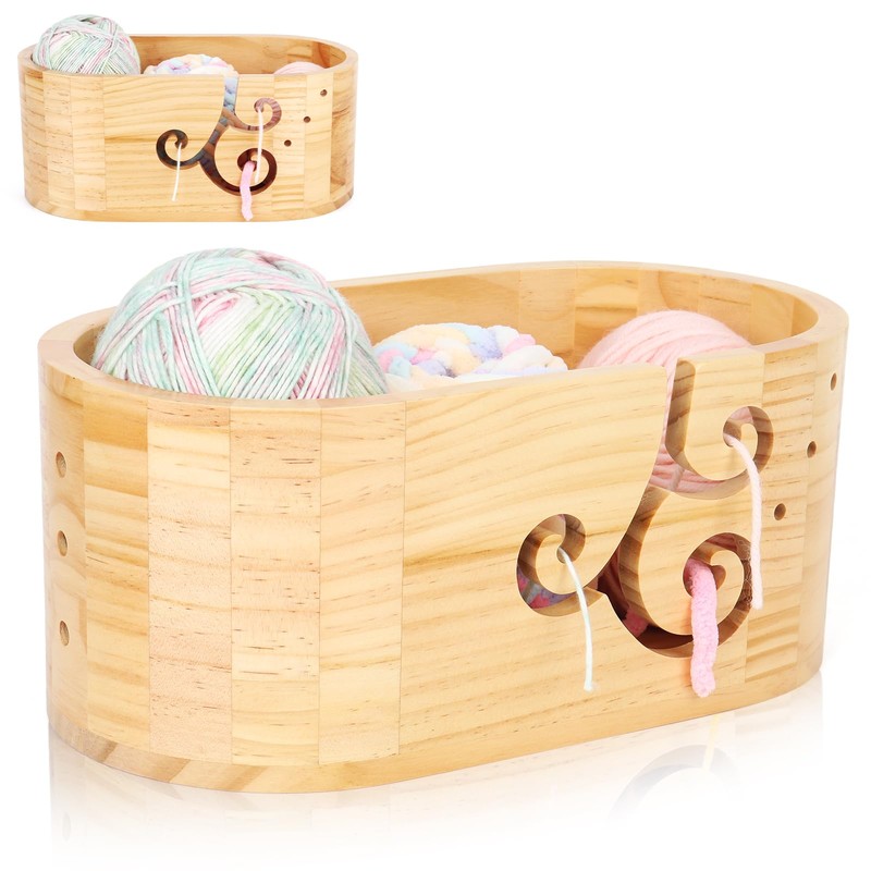 - [Perfect Gift for Knitting & Crochet Lovers] The oval wooden yarn holder is practical, large-capacity, and elegant in retro style. It can not only hold multiple yarn balls and knitting accessories, but also serve as a decoration to add color to your house. If you want to give your grandmother, mother, or lover a thoughtful and practical gift on Christmas/New Year/Valentine's Day/Mother's Day/Birthday, our yarn storage bowls will be an ideal choice!