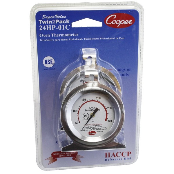 Cooper-Atkins 24HP-01C-1 Stainless Steel Bi-Metal Super Value Twin2Pack 24HP Oven Thermometers, 50 to 300 degrees C Temperature Range (Pack of 2)