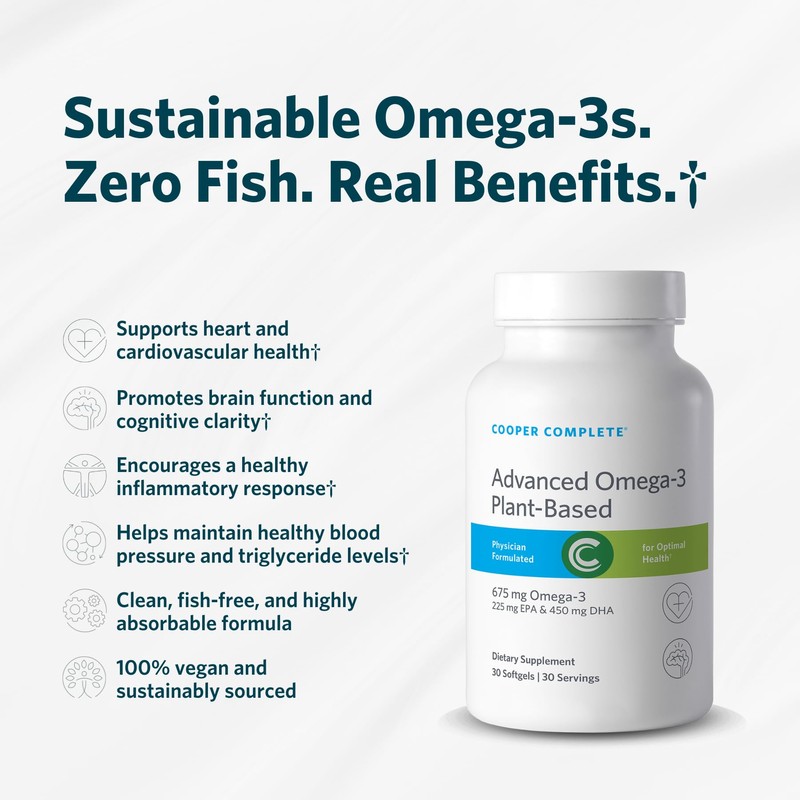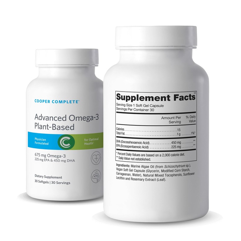Cooper Complete Advanced Omega-3, Plant-Based Vegan Softgels, 675mg Omega-3, 225 mg EPA & 450mg DHA, 30 Servings