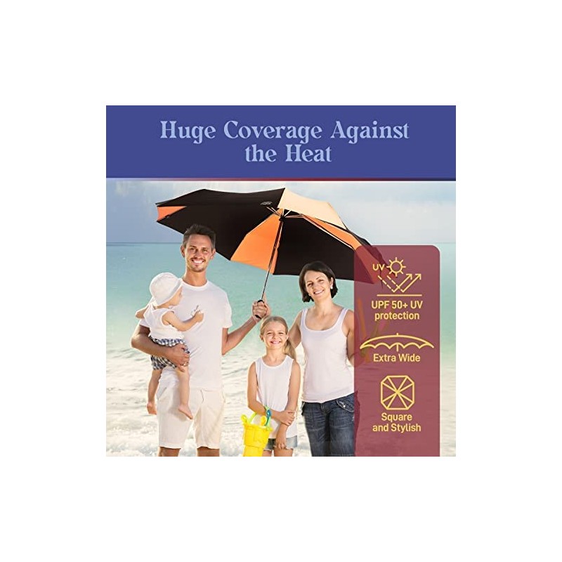 Coopola Extra Large Square Golf Umbrella - 55-Inch Arc Large Umbrella with One-Touch Auto Open and Close Button, UV Umbrella w/UPF 50+ Fabric, Portable 1.04 lbs Oversized Foldable Umbrella (BLK/SAND)