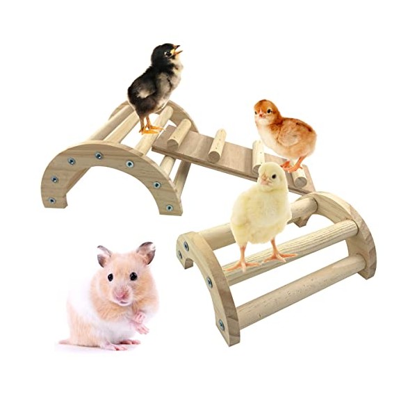 CooShou Chicken Perch Chicken Toys Chicken Roosting Bar Chick Jungle Gym Wooden Arch Bridge Platform Stand Ladder 3in1 Climbing Ramp Toys for Chick Hamsters Gerbils Mice Rodent and Small Animals