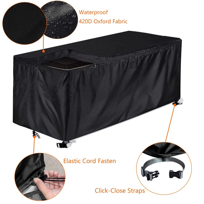 - ✔ ALL WEATHER PROTECTION - This deck box cover is made of water-resistant 420D Oxford fabric, which is tear-resistant, weatherproof, breathable and durable. It also provides complete protection from harmful UV rays in summer and heavy snow/ice in winter. Extend the life of the deck box.