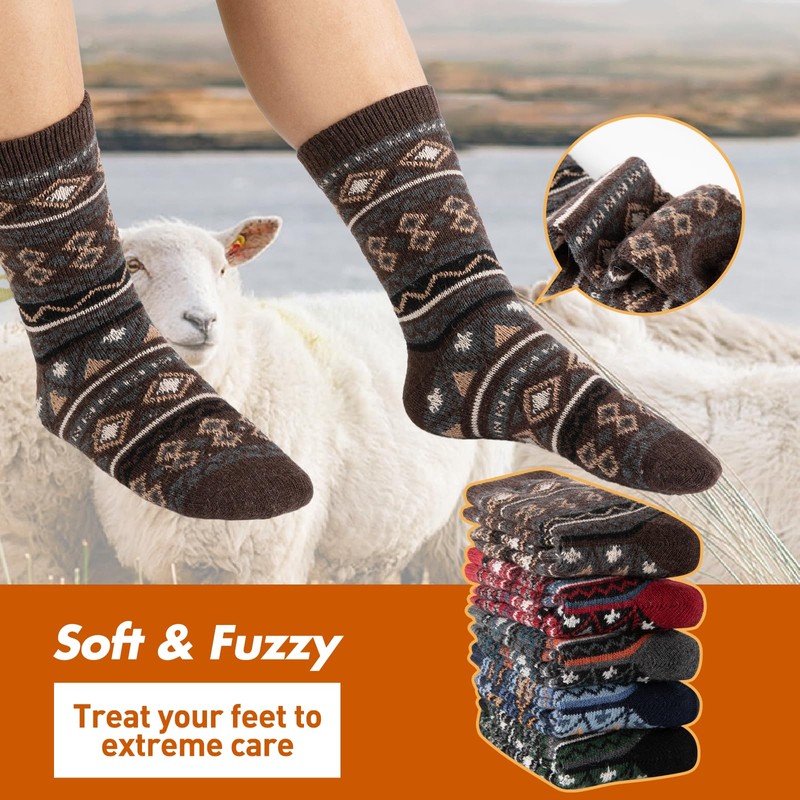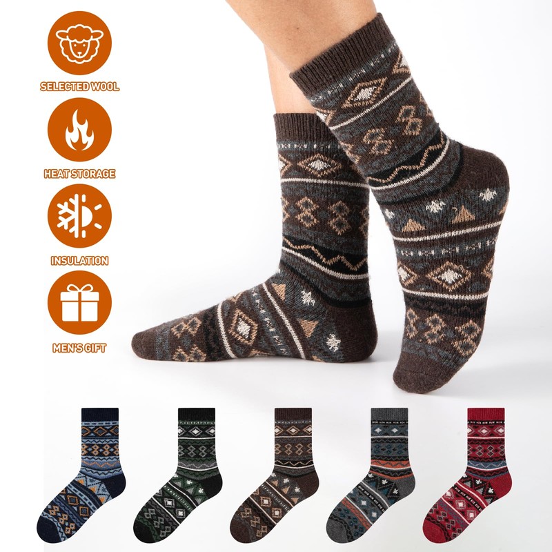 COOVAN Wool Socks Mens Warm Winter Thermal Thick Knit Cozy Soft Crew Boot Socks for Cold Weather (5 Pairs)