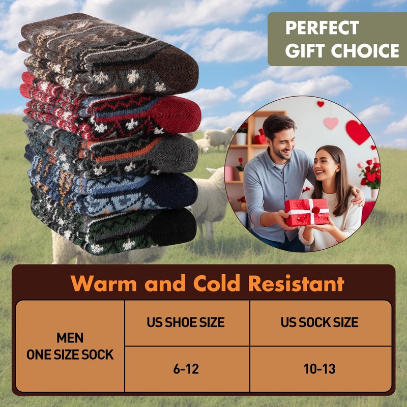 - 【Multi Function】Various Style for you to choose. The great quality men wool thermal socks are suitable for different situation, you can wear them as winter socks,warm socks, hiking socks,boot socks,thermal socks,crew socks,cabin socks, office socks, school socks, heavy socks,fuzzy socks, outdoor socks, sport socks, indoor socks, home socks, work socks, knit socks, heavy duty socks, Christmas socks in Spring, fall, winter season or in any cold weather or snow areas!