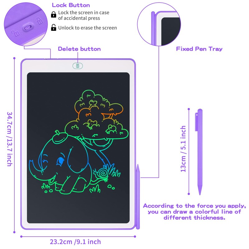 - đČ Multi-functional Uses- The electronic drawing pad kids is not only a good toy for your kids to paint, grow up their interest and free up their imagination, also a good tool for you to use in office and home, you can write some notes, reusable, environmental and is easy to use.
