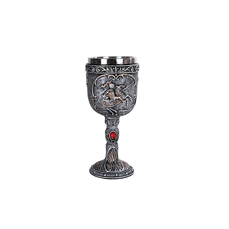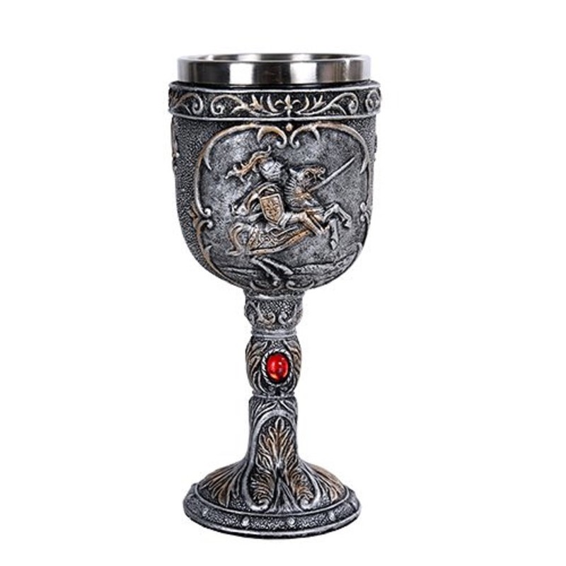 Copa de vino Medieval Knight de polirresina con borde de acero inoxidable