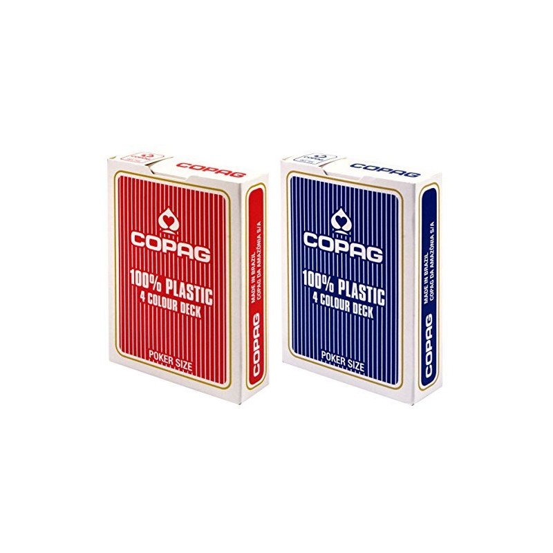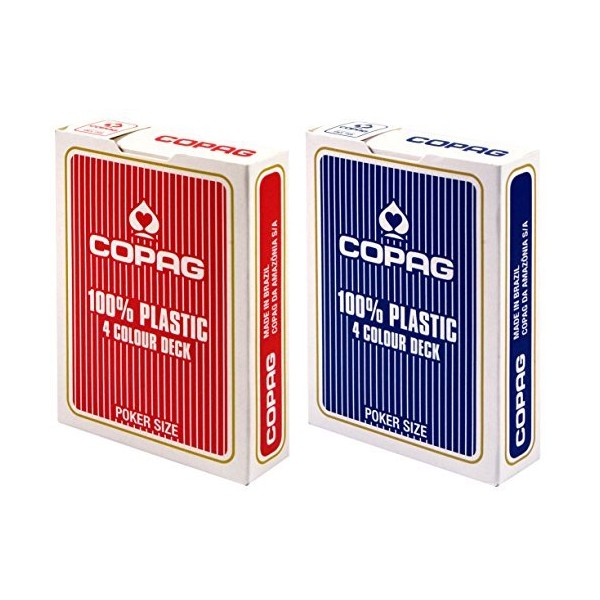 Copag 4 Colour 100% Plastic Playing Cards Poker Size Jumbo Index (1 Red & 1 Blue) by Copag