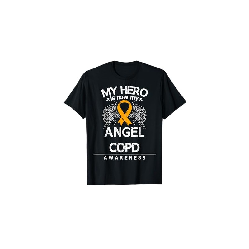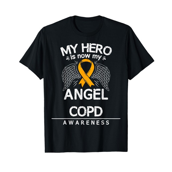 • Orange awareness ribbon product: My Hero Is Now My Angel. COPD awareness gift idea for COPD patients, great gift idea to show your support for COPD awareness