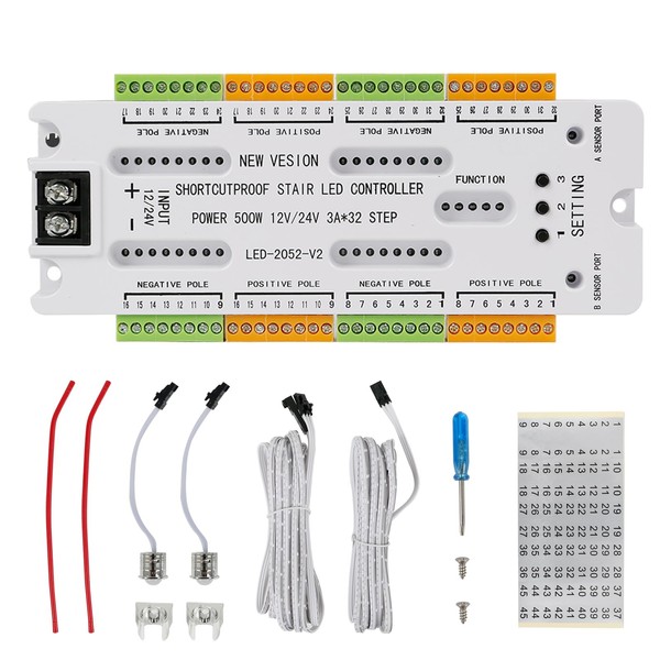 - 【Safe to Use】: With anti-leakage system, DC12V-24V, stable output, the number of step is adjustable (max 32 steps), Mainly used for indoor LED stairwell lights, led stair lighting, staircase step light.